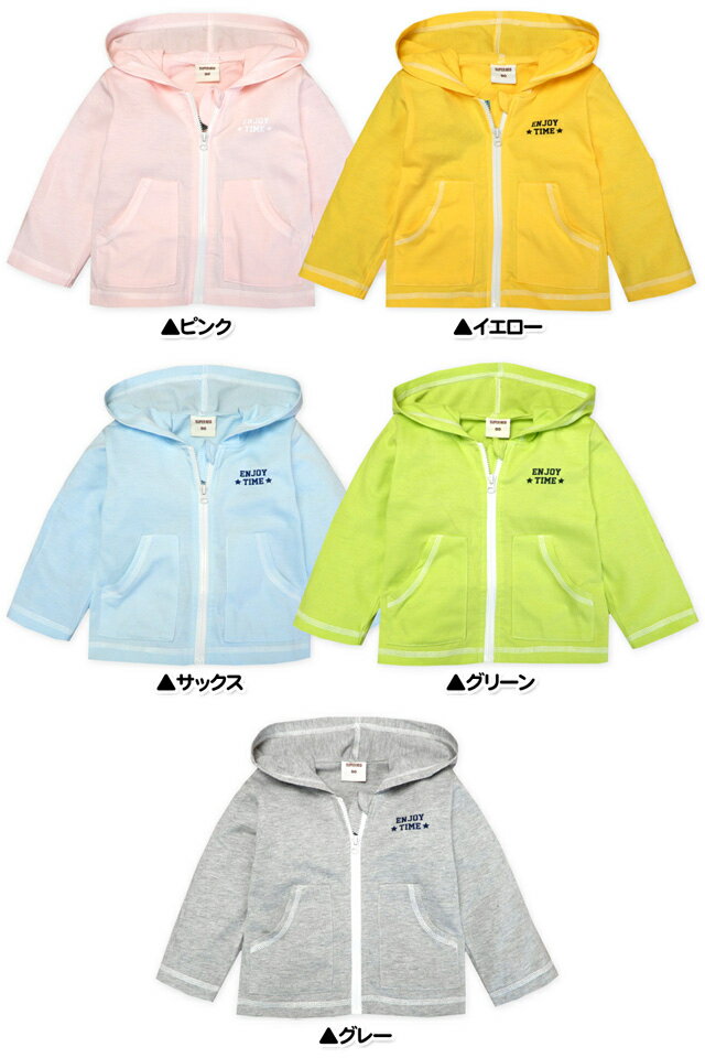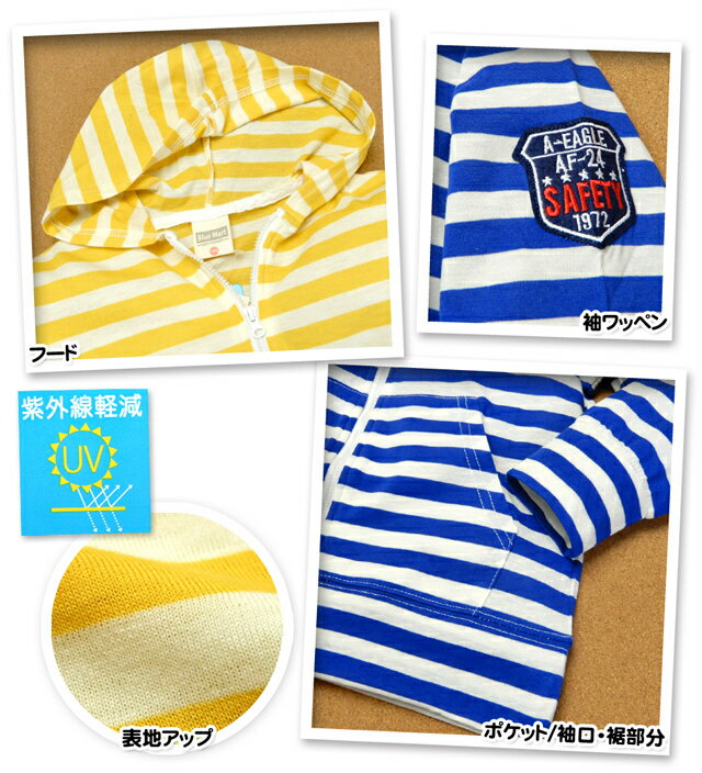 【送料無料】子供服 男の子 アウター フルジップ パーカー ジャケット UV加工 紫外線軽減 ボーダー柄 ワッペン 男児 キッズ 100cm 110cm 120cm 130cm【メール便対応】