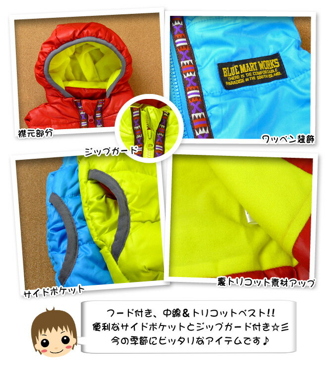 ベビー服 男の子 アウター フルジップベスト トリコット 中綿 ワッペン装飾 男児 ベビー 80cm 90cm 95cm