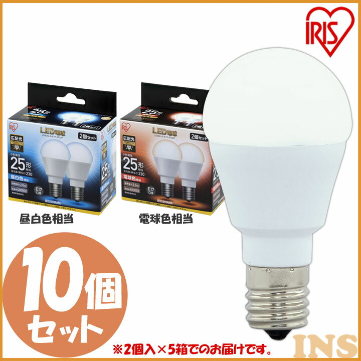 【10個セット】 LED電球 E17 25W 電球色 昼白色 アイリスオーヤマ 広配光 LDA2N-G-E17-2T52P LDA2L-G-E17-2T52P セット 密閉形器具対応 小型 シャンデリア 電球のみ おしゃれ 電球 17口金 25W形相当 LED 照明 長寿命 省エネ 節電 広配光タイプ ペンダントライト 玄関