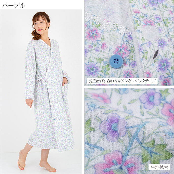 <こだわりポイント> ・留め外しが楽なワンタッチテープ(マジックテープ仕様) ・肌にやさしいフラット縫製 ・袖口にゴム通しホール付き ・便利で使いやすい大きめポケット ・はがせるサイズネーム SIZE GUIDE> 詳しいサイズ表記はこちら Mサイズ Lサイズ ヌード寸(cm) バスト 79-87、ヒップ 87-95 バスト 86-94、ヒップ 92-100 平置き実寸(cm) 打ち合わせ ラグラン袖 ふくらはぎ丈 ■トップ 着丈:約112バスト:約109.4裄丈:約74袖幅:約47.4裾周り:約134.6 ■トップ 着丈:約114バスト:約114.4裄丈:約76袖幅:約48.8裾周り:約139.6 この商品の詳細 素材 綿100%(エイトロック) 原産国 日本 生地の伸縮 伸縮性はありません。